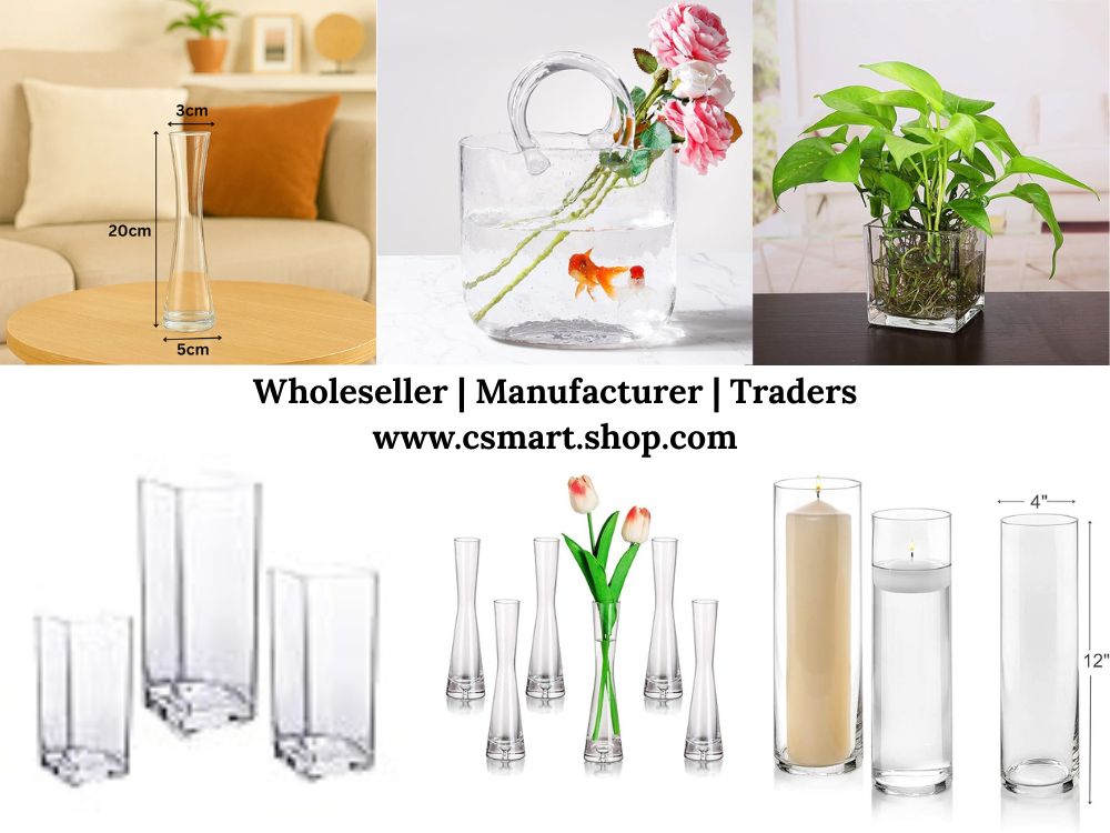 Glass Flower Vase (15 cm, 20 cm, 25 cm, Clear) Set of 3