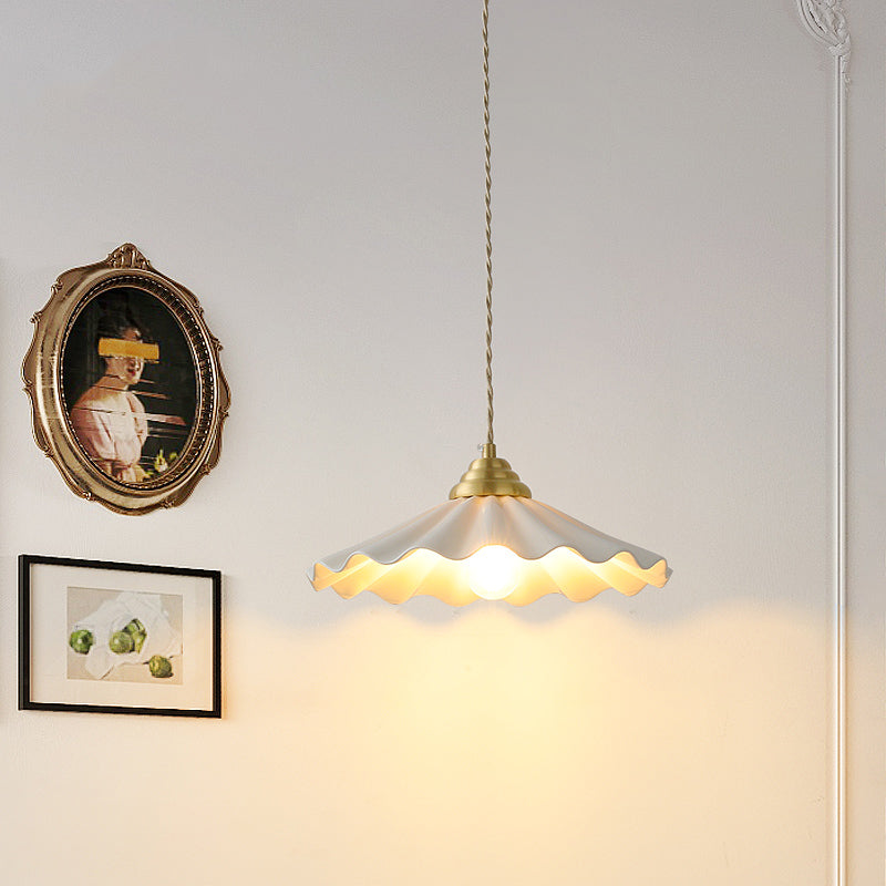 All-Copper Ceramic Floral Pendant Light – Japanese Vintage Chandelier for Bedroom Bedside, Retro Rice-Hat Dining & Bar Table Lam