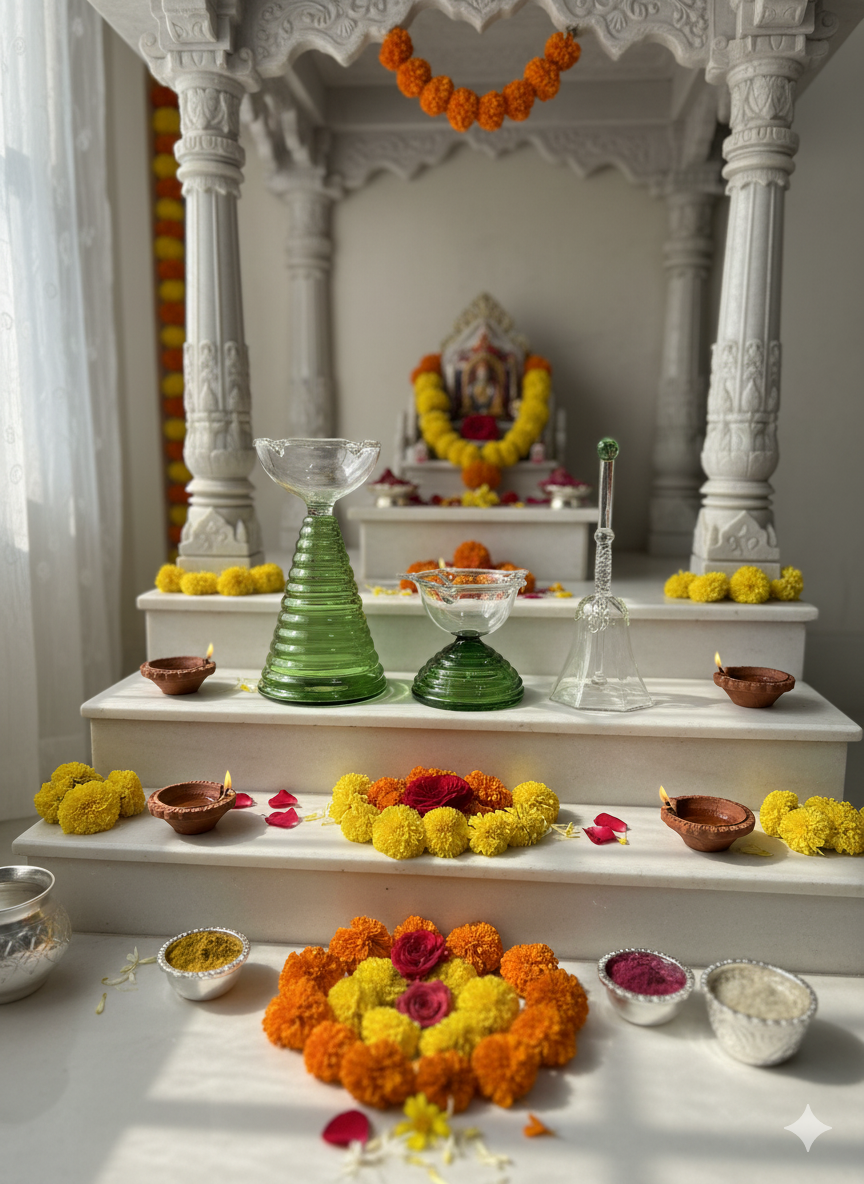 Contains : 2 Diyas ( One small + One Big + One Ringing Bell )