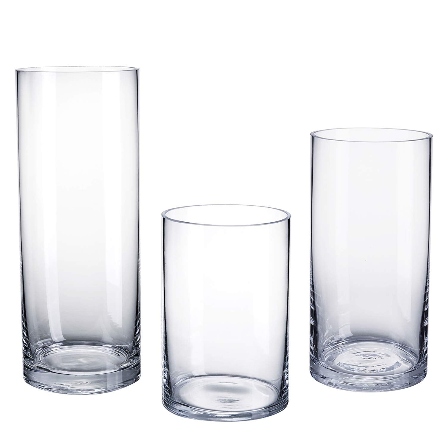Glass Flower Vase (15 cm, 20 cm, 25 cm, Clear) Set of 3